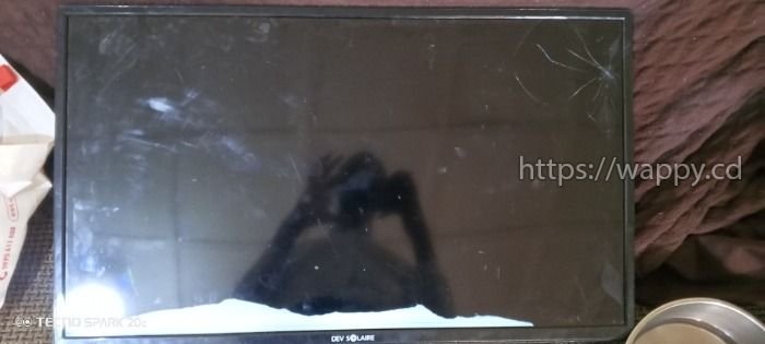 TV 32" tombée, écran presque noir avec tache. Idéal pour récupérer :