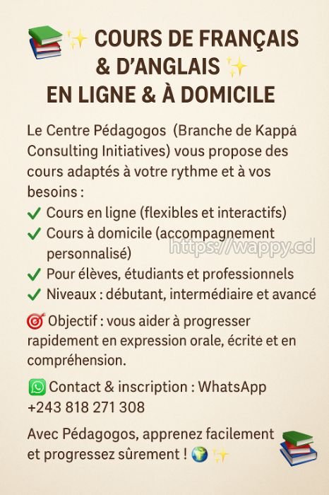 KAPPA CONSULTING, par sa branche PEDAGOGOS CENTER vous annonce une session d'anglais