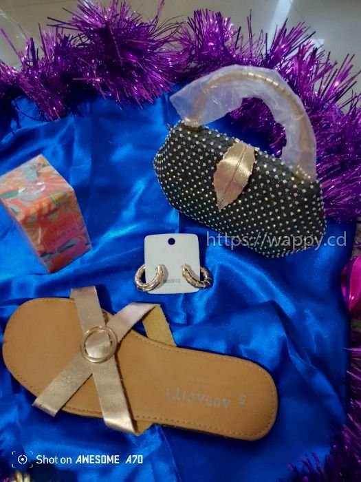 Package accessoires femmes, contenant : sacs a main, bijoux, foulard, sandales, parfum.....