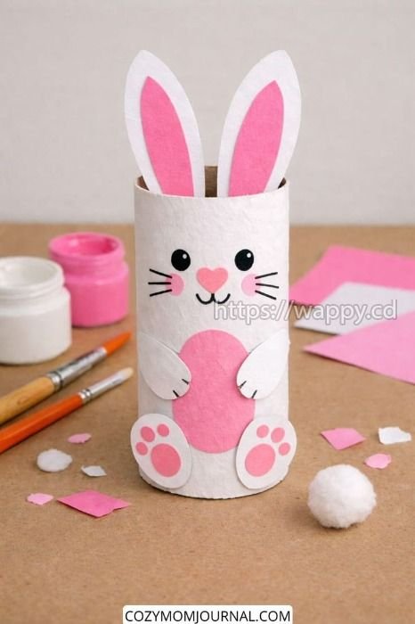 Passer des fêtes inoubliables avec notre mascotte lapin de pâques et nos ateliers bricolages (fabrication de lapin en carton et couronne de paques).